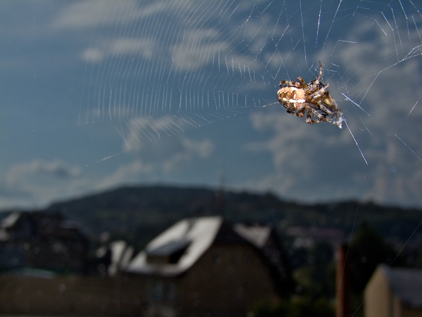 … čímž se však ani v nejmenším nedal vyrušovat ve svém díle výstavní křižák, který se utábořil za jedním z oken klavírní třídy v základní umělecké škole a v daném okamžiku balil do pavučiny lapenou mouchu.
