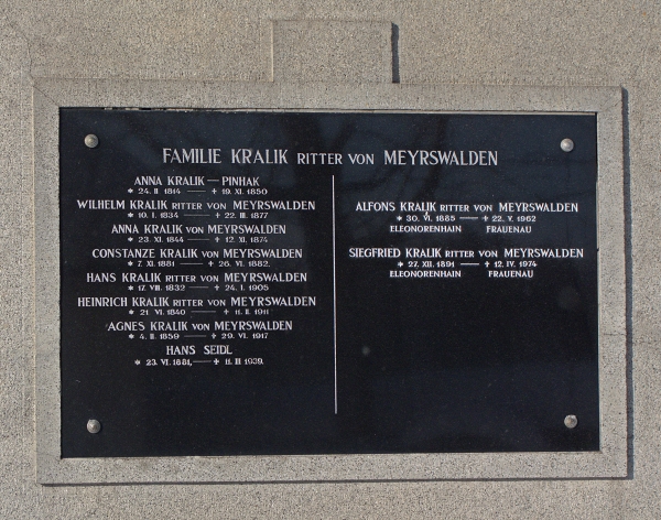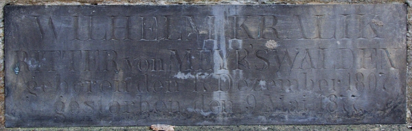 … kdežto kříž jeho později zemřelého tchána je prostšího charakteru, zato však ozdoben korunkou symbolizující rytíře z Meyerswaldenu. Pozornému čtenáři pak jistě neuniklo, že se právě současně dívá na onen slíbený další zdroj, který potvrzuje jako rok Kralikova narození letopočet 1807.