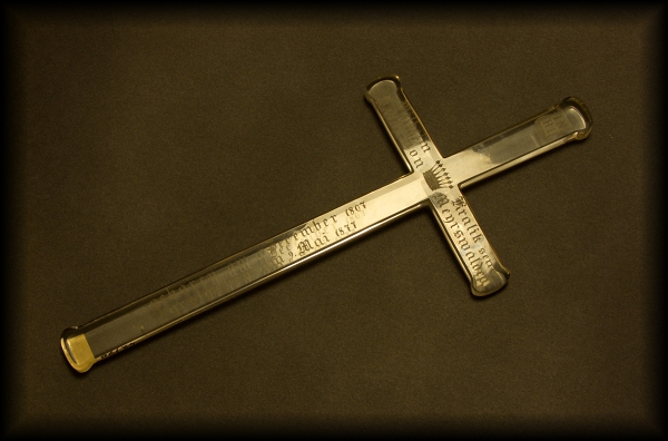Těžko říci, jak bylo při přemísťování s honosnými náhrobky manipulováno, ale je jisté, že při tom došlo k proražení a zřícení vrchní klenby hrobek obou pohřbených mužů. Padající trosky poškodily rakve i v nich ležící tělesné pozůstatky. Při následné likvidaci sutin a průzkumu místa necitlivého narušení věčného spánku nebožtíků byl v každé rakvi nalezen zcela neporušený křišťálový kříž s gravírovaným nápisem identifikujícím mrtvého včetně jeho základních životních dat. S ohledem na běžné dobové pohřební zvyklosti se lze domnívat, že kříže mohly být s velkou pravděpodobností původně i vloženy zesnulým přímo do rukou (nabízí se ostatně hypotetický předpoklad, že podobným způsobem byli možná na svou poslední cestu vybaveni i další příslušníci rodu, kteří leží v hornovltavické hrobce). Dnes se tyto vzácné nálezy, na něž by ovšem z přísně etického hlediska mohlo být pohlíženo i jako na oloupení mrtvých, po bezmála stoletém pobývání v temnotě hrobek nacházejí na zámku – v muzejním depozitáři.