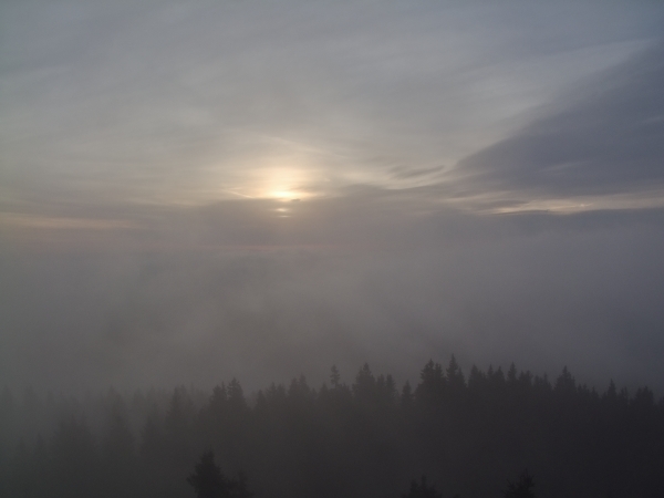 Po včerejším vývoji počasí se dalo očekávat, že i mlha dostane nápad vyšplhat výš …