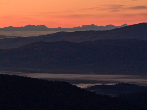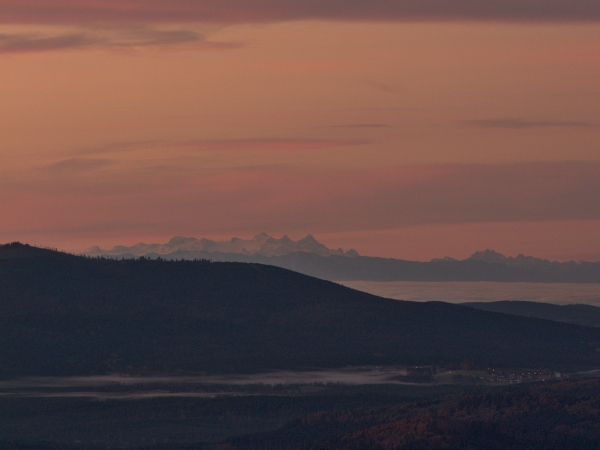 Právě vyšlé sluníčko už se zdraví s alpským pásem mezi Plechým a Smrčinou …