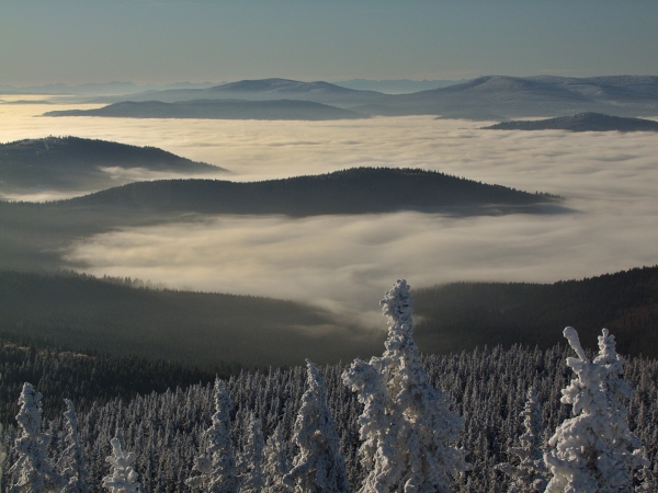 Dva měsíce před Vánoci nám Boubín tradičně nabízí svá inverzní kouzla – musíme však za nimi vyrazit na jeho vrchol, protože jen o nějakých sto metrů níže se opět nacházíme uprostřed mlhy …