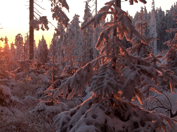 … nebo pozorovat sluneční hru ve špičkách letitých smrků, …