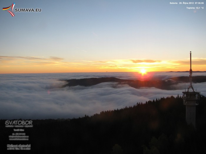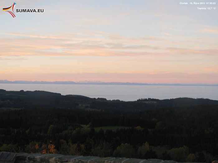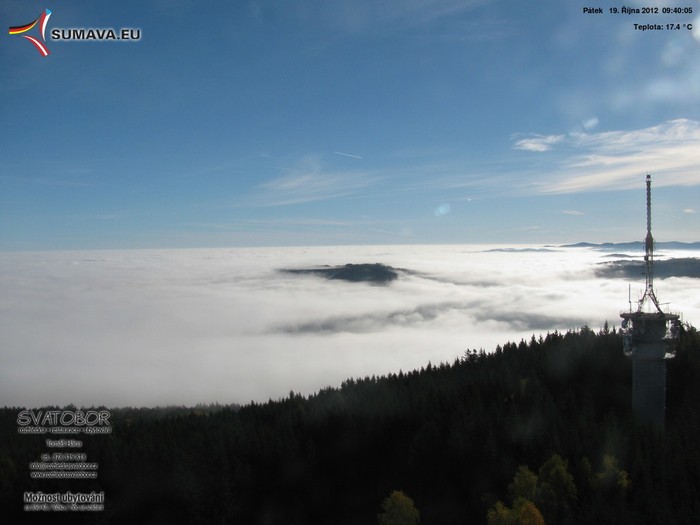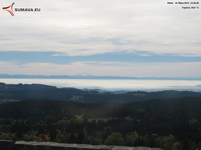 Uplynulý týden byl na Šumavě ve znamení inverzního počasí. Úchvatné záběry byly především z webkamery na Svatoboru, kde nižší polohy zalila nízká oblačnost, kdežto na Svatoboru panovalo slunečné počasí. V týdnu také byly z několika webkamer vidět Alpy, nejlépe z Vítkova Kamene.