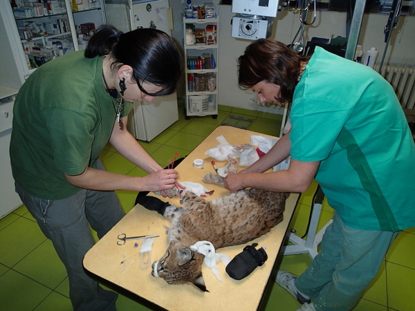 „Museli jsme provést dvě operace, nejprve otevřenou zlomeninu, u té jsme použili kovové destičky pro zpevnění kostí, navíc došlo k poškození vazů na patě, za dva dny jsme prováděli operaci stehenní kosti, tam už šlo o operaci jednoušší,“ vysvětluje zásahy Šárka Janásková. V současné době ještě rysí mládě musí nosit dlahu, ale z nejhoršího už se vylízalo. Nyní o rysa pečují v záchranné stanici v Klášterci. Na jaře počítají s tím, že se navrátí do volné přírody.