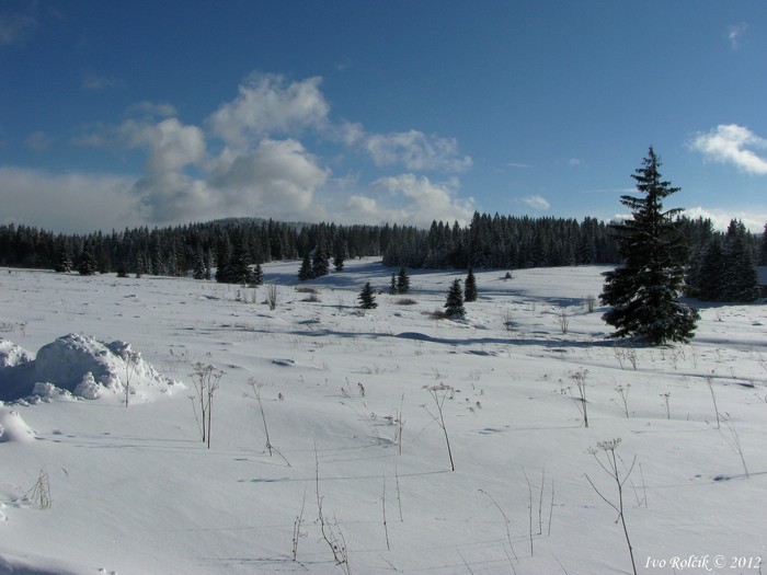 Zimní počasí panuje více jak týden, sněhová peřina již pokrývá celou Šumavu, výška sněhu je však značně rozdílná. Nejvíce sněhu leží na Březníku 51 cm (údaj z 5.12.), Velký Javor dnes hlásí 46 cm, Prášily 35 cm, Perla 30 cm, Hosova Stráž 25 cm, Horská Kvilda 20 cm, Churáňov 17 cm, Stožec 15 cm, Velhartice 8 cm, Černá v Pošumaví a Volary 7 cm, Vimperk 4 cm.
