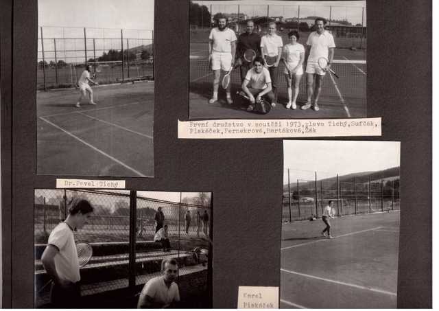 Plocha byla podmáčená, byl na ní navezen hrubý štěrk a to bylo všechno. Sháněli jsme škváru na podklad na Silnicích, v ZVVZ a pořád to bylo málo. Ale to nebylo všechno, znamenalo to ji ještě přesít a položit tak, aby se na kurtech nedržela voda. Škváru jsme stahovali mezi latěmi, abychom dostali rovinu. Stavěly se dva kurty a tréninková zeď. Dnes to nedovedu odhadnout, ale muselo se vykopat ještě nejméně 60 děr pro sloupy s pletivem, s tím nám pomáhal někdo z Telekomunikací nějakým ručním vrtákem. Potom sloupy zabetonovat a navařit pletivové rámy s pomocí svářečů ze ZVVZ a pak celou tu obrovskou plochu natřít. Na natírání pletiva dostal každý svůj počet rámů a ty musel oboustranně natřít. Položila se antuka, instalovaly sítě a mohlo se začít. Pamatuji se, že nedočkavci chodili zkoušet tenis na volejbalové hřiště u gymnazia.