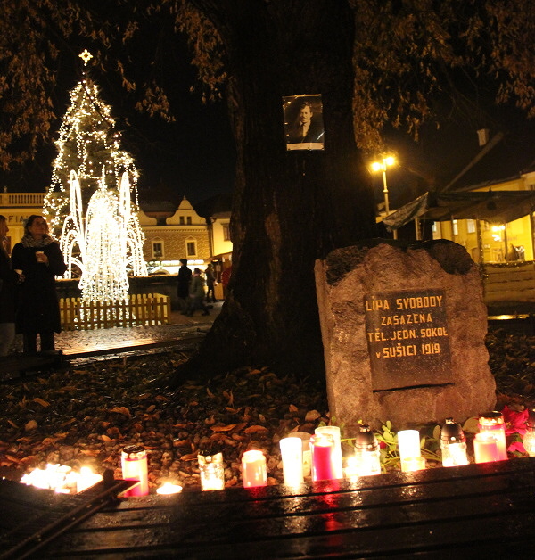 Právě tady se konala vzpomínková akce na prvního českého prezidenta. Jejím mottem bylo „máme otevřená srdce“. A ačkoliv byla účast skromná, přece jen vystačila na to, aby přítomní symbolicky objali Lípu Svobody, na níž byl připevněn portrét Václava Havla, a společně mu vzdali poctu minutou ticha a zpěvem české hymny.