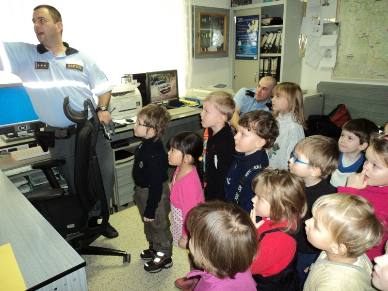 Včera 30. ledna 2013 se vydala MŠ 1. máje na prohlídku Obvodního oddělení policie ČR ve Vimperku. Děti měly možnost vidět chod oddělení, navštívily policejní celu, ve které se jim opravdu líbilo, vyzkoušely si na vlastní kůži pouta a prohlédly si policejní automobil. Po celou tu dobu se jim ochotně věnoval nprap. Martin Willmann.