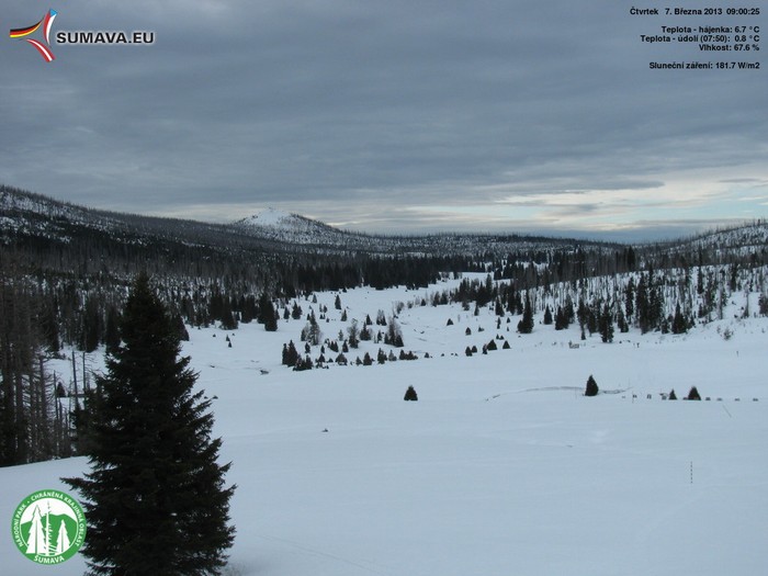Počasí v prvních březnových dnech přineslo tolik očekávané slunečné počasí. Denní teploty postupně stoupaly a poprvé se letos na Šumavě dostaly nad deset stupňů i v horských polohách. Díky nočnímu vyjasnění klesaly teploty k -8°C, v mrazových kotlinách i pod -15°C. Sníh odtával relativně pomalu, maximálně několik centimetrů za den. Zatím leží souvislá sněhová pokrývka přibližně od 500 metrů nad mořem