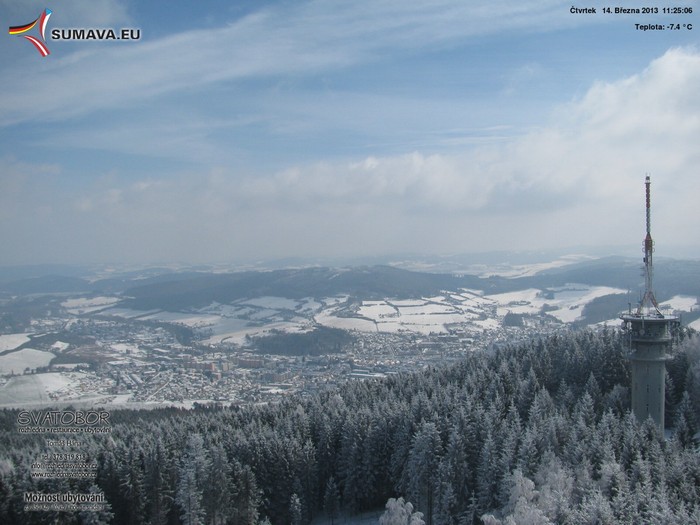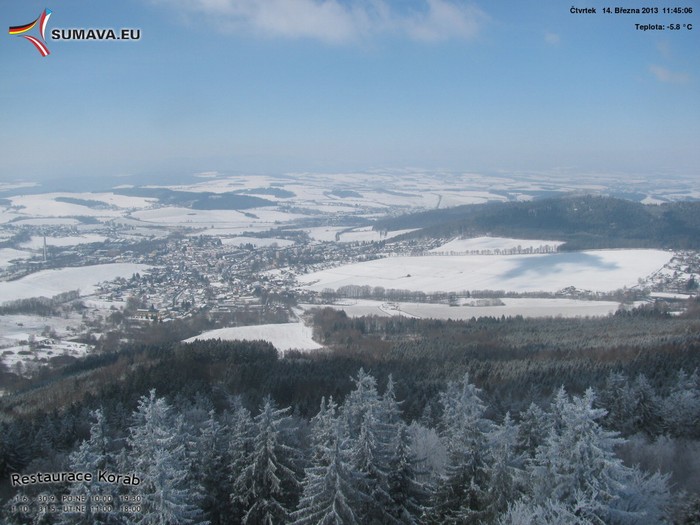 Čtvrtek přináší od rána velkou oblačnost se slabým sněžením a teplotami mezi -5°C až -10°C. Počasí tak připomíná spíše leden než půlku března. Během dne bude docházet k částečnému zmenšení oblačnosti a ustávání srážek. Teploty zůstanou pod bodem mrazu, mezi -4°C až -1°C, v 1000 metrech kolem -7°C. Pátek přinese opět velkou oblačnost, během dne bude docházet ke zmenšování oblačnosti na polojasno až skoro jasno, denní teploty zůstanou opět slabě pod nulou. Sobota by měla být prosluněná, ráno však bude velmi mrazivé, teploty klesnou i pod -10°C, v mrazových kotlinách při vyjasnění a uklidnění větru až k -25°C. Denní teploty se vyhoupnou nad nulu, nejčastěji mezi 0°C až +4°C, oblačnosti během dne částečně přibude. Nedělní dopledne bude opět slunečné, během dne by se mělo zatáhnout, srážky se však neočekávají.