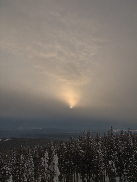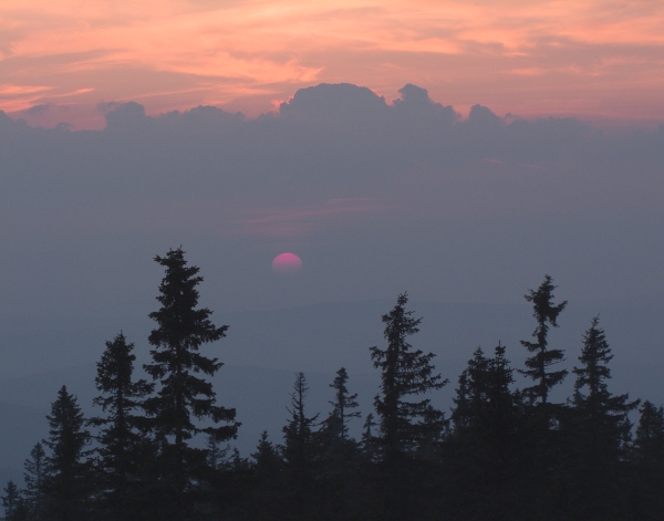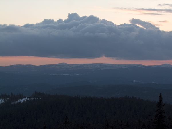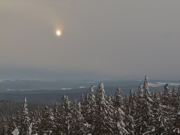 To ovšem jinak přichází skutečně jen drobnými krůčky – např. dnešní soumrak na Boubíně už sice probíhal v teplotě nad bodem mrazu, třebaže představované jediným stupněm, ale sluneční západ mnoho nepředvedl, mračna, a to i sněhová, mají stále silné slovo,