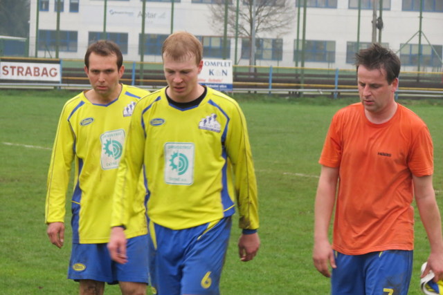 Třetí branka trošku zápas uklidnila a hrálo se spíš ve středu hřiště. Do půle stojí za zmíňku snad jen dobrá střela čerstvého třicátníka Petra Vondráška, který za vápnem pálil jen těsně nad Liškovu branku.