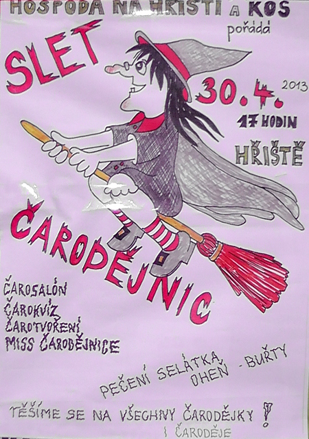 Malé i velké čarodějnice si tu užijí čarokvíz, čarosalón a čarotvoření. Volit se bude i miss čarodějnice. Na hřišti se budou péct vuřty a také selátko.