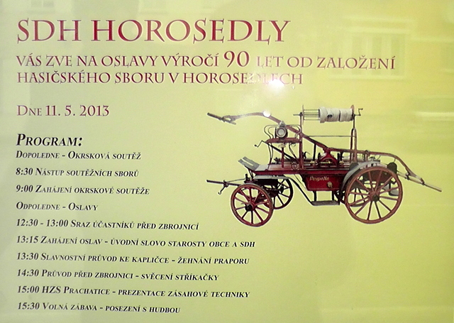 S3140004V sobotu 11. 5. 2013 oslaví SHD Horosedly 90. výročí od založení hačiského sboru.