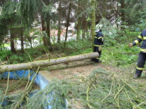 Patrně poryvy silného větru v neděli odpoledne způsobily vývrat silného, více než patnáctimetrového stromu v ul. Na Štěbetce. Ten špičkou se nad zemí zachytil o