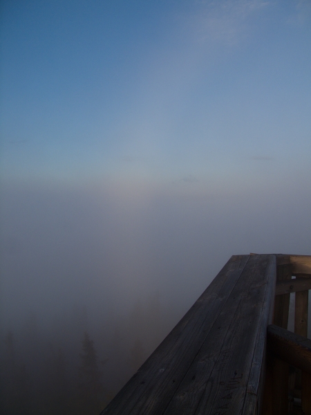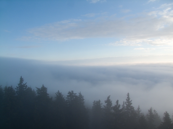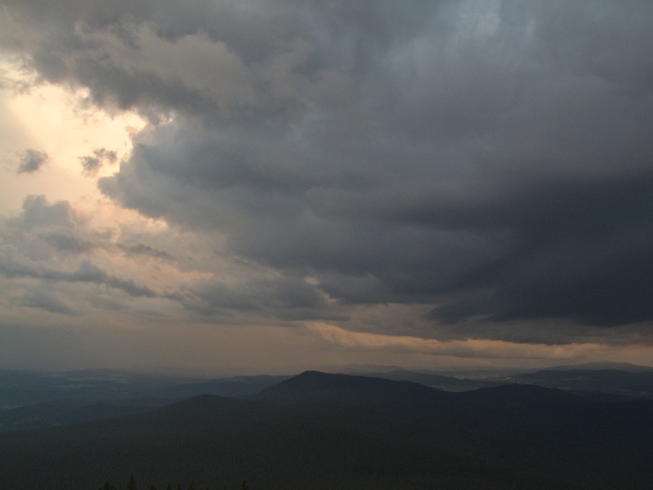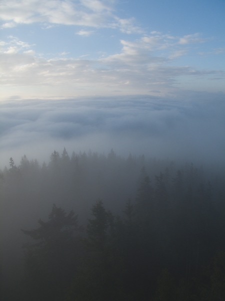 Právě tento nejspodnější mrak působil zprvu dojmem, že se chystá nasunout nad rozhlednu, nakonec se ale roztáhl do stran a rozplynul.