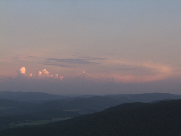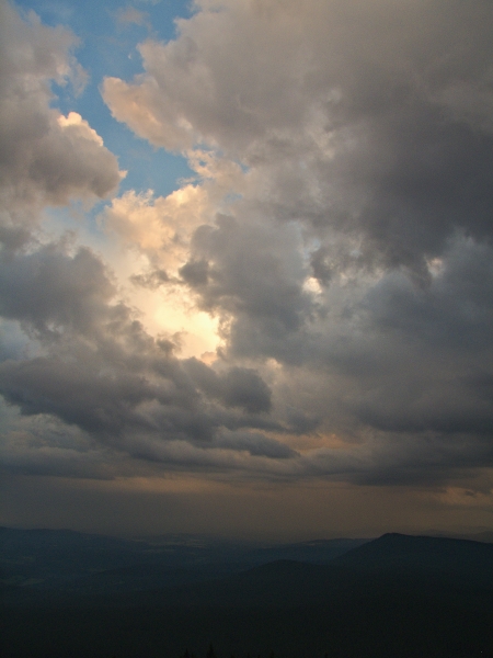 Vrchol pak nabídl rozřešení otázky, kam se poděla všechna mračna, která ještě okolo páté hodiny odpolední v hojném množství naoko bezmála hrozila bouřkou. Něco málo zůstalo na obzoru nad hraničními horami a současně je zřejmé, …