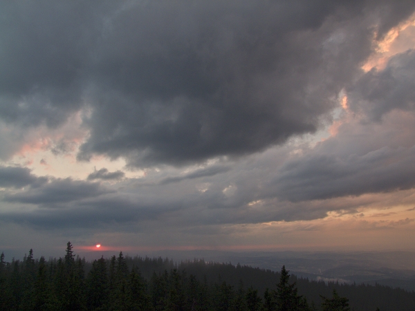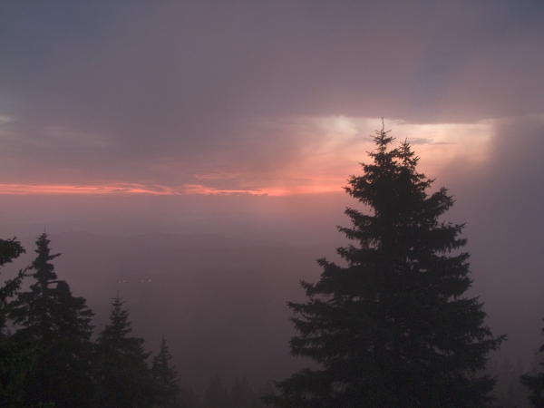 První letní sobota sice začala deštivě, ale nakonec celkově nedopadla (aspoň na Šumavě) tak mokře, jak nás strašily předpovědi rosničkářů. Naopak ji určitě lze charakterizovat jako slunečnou. Teprve v podvečer se situace zajímavým způsobem změnila a jednoznačně zavelela k cestě na Boubín. Ta sama o sobě proběhla za vytrvalého deštíku, ale jako vždy stála za to – nahoře čekala odměna, a to doslova jako hrom, neboť ze dvou stran fantastické scenérie, která se kolem dokola zjevila, skutečně co chvíli hřmělo. V průběhu večera pak situace na obloze dokonce místy budila zdání, že by mohlo spustit i přímo nad věží, rozuzlení však nakonec bylo jiné …