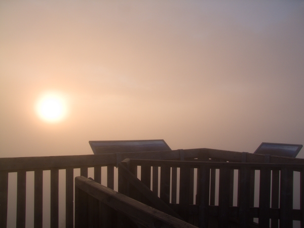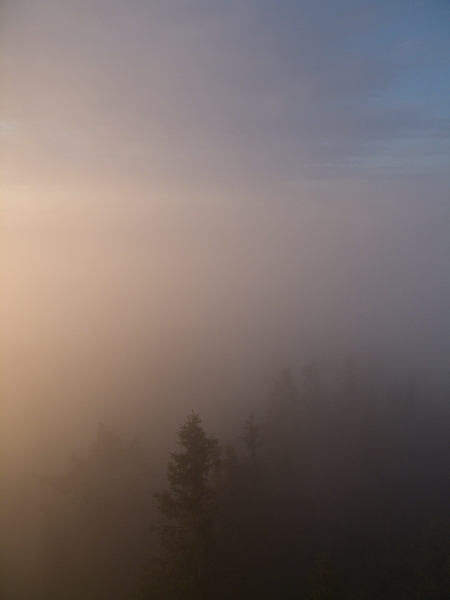 Nad Vimperkem pak čekalo pro příští výjevy přichystané mlžné promítací plátno, které se, poháněno větrem, po chvilce počalo zvolna zatahovat jihovýchodním směrem. Na všem, co mu stálo v cestě, se prakticky okamžitě začaly usazovat drobounké vodní kapičky a věž se náhle téměř na půl hodiny ponořila do tradiční bílé tmy. Vše už bylo jen záležitostí trpělivosti, …
