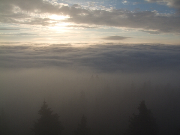… že rozhraní inverze a čisté oblohy kopíruje plus minus nadmořskou výšku Boubína, což byl ideální výchozí stav.