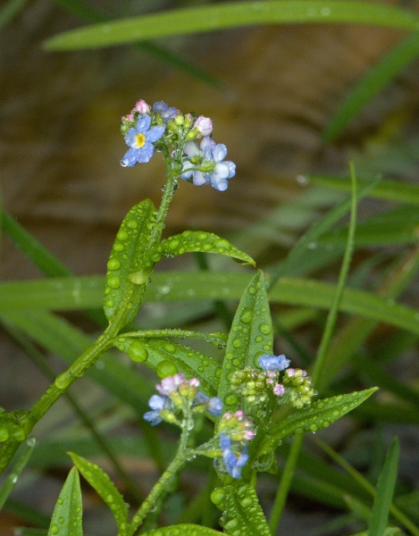 Někdy se třeba i pomněnka může náhle stát na chvilku vodní rostlinou – vody, kterou už plně napitá zem nevsakuje, se objevuje v podobě spousty nenadálých potůčků na lukách stále více než dost.