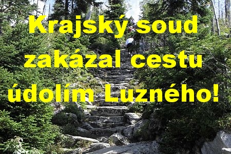 Tohle je pro Šumavu ta nejsmutnější zpráva za poslední rok. Rána! Šok! Sen mnoha generací turistů se rozplývá. Zatím! I když cestu skrze Luzenské údolí na Modrý sloup povolilo Ministerstvo životního prostředí ČR, na základě žaloby Dagmar Kjučukové z Okrašlovacího spolku Zdíkovska a České společnosti ornitologické ji včera zamítl Krajský soud v Českých Budějovicích.