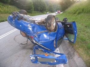 V místě po projetí levotočivé zatáčky v klesání komunikace přecházející v přímý úsek nepřizpůsobil rychlost jízdy vozidla dopravně technickému stavu pozemní komunikace, svým schopnostem a okolnostem, které mohl předpokládat. S vozidlem dostal smyk, vyjel nejprve vlevo mimo vozovku na zatravněný protisvah, ze kterého následně opět sjel na vozovku, přičemž se s vozidlem na vozovce několikrát převrátil přes střechu a poté zůstal s vozidlem převrácený na střeše v pravém jízdním pruhu v uvedeném směru jízdy. Při dopravní nehodě došlo k lehkému zranění řidiče a k těžkému zranění spolujezdce na pravém předním sedadle. Spolujezdec byl při příjezdu záchranářů nalezen mimo vozidlo vpravo vedle komunikace. Výsledek dechové zkoušky byl u řidiče negativní. Negativní byl také výsledek orientačního drogového testu.