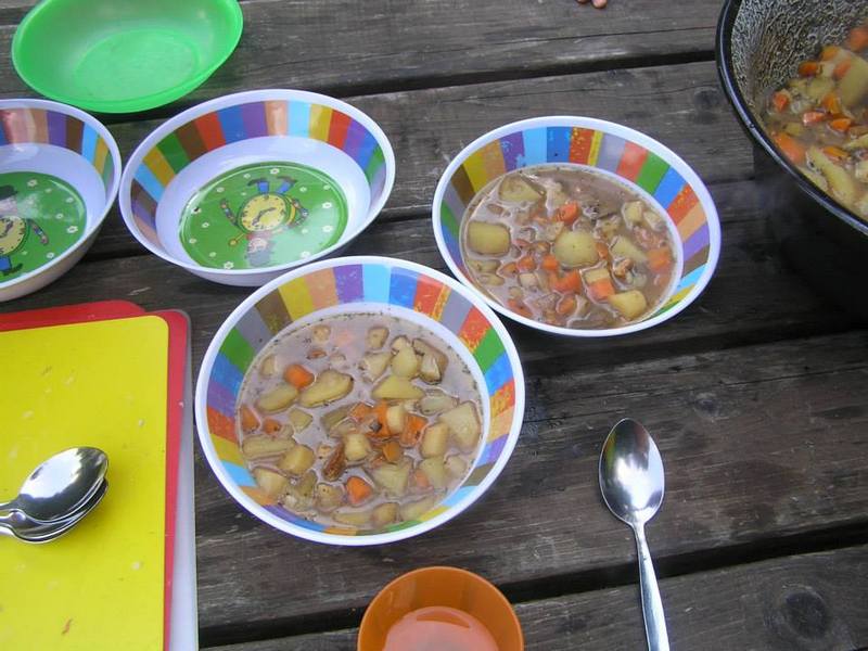 Funguje to jako školka v přírodě, příměstský tábor nebo mateřské centrum. O vaše děti je denně postaráno od 8 do 16 hodin a to za cenu 350 Kč za den. V ceně je svačinka, oběd, svačinka, pití po celý den a pozor!, většinu pokrmů si připravují děti samy.