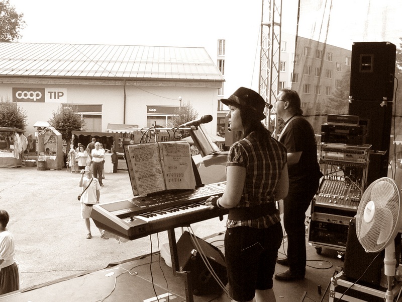 Já jsem začala vystupovat s kapelou ve svých dvanácti letech. Hraji na elektronické klávesy, ale stejně používám nejvíce klavírní rejstřík, (klasické pianino totiž sebou vozit nemůžeme) taťka paří na elektrickou kytaru, klasickou kytaru, foukací harmoniku a zpívá asi polovinu repertoáru. Do programu zařazujeme především populární hity od 60 let po současnost, pop rock, dále něco z country a lidovek i vlastní tvorbu, vlastně zahrajeme všechny žánry, co si kdo zamane.