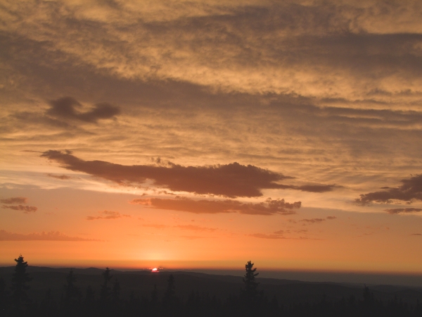 Sluneční kotouč se skrze potemnělou nízkou oblačnost na obzoru dokázal prosadit …