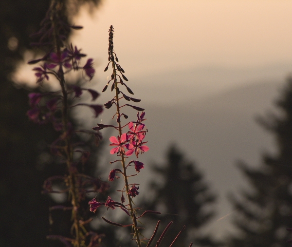 Po celé Šumavě se můžeme v tento čas setkávat s bohatými charakteristicky žlutými trsy kvítků některého ze starčeků – v tomto případě se jedná o poměrně vzácný starček hercynský (Senecio hercynicus), vytvářející nejednou působivě propletené barevné harmonie společně s purpurovými ostrůvky vrbovky úzkolisté.