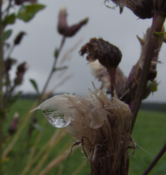… z náhle zčernalé oblohy se spustila za občasného hřímání průtrž mračen, postupně se měnící v drobnější, ale vytrvalý déšť.