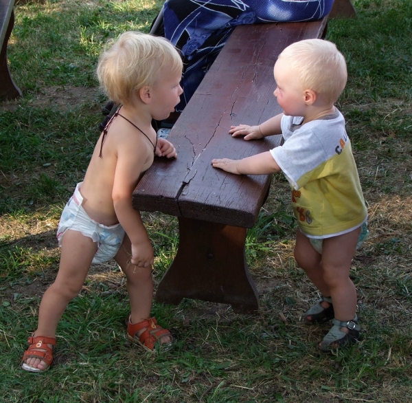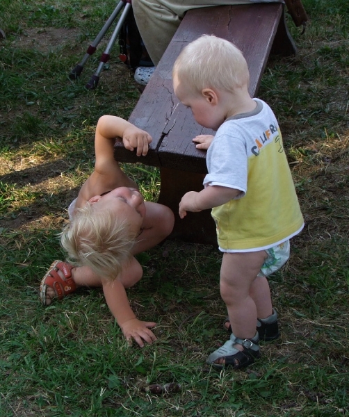 A ze všeho nejlépe se mají ti nejmenší … copak je to asi pod tou lavicí?
