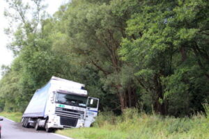 Dnes neměl dobrý den řidič, který skončil kolem půl třetí v příkopu u Hrádku. Kolize nevypadala nikterak hrozivě, nicméně vyproštění kamionu asi nějakou chvíli trvalo.