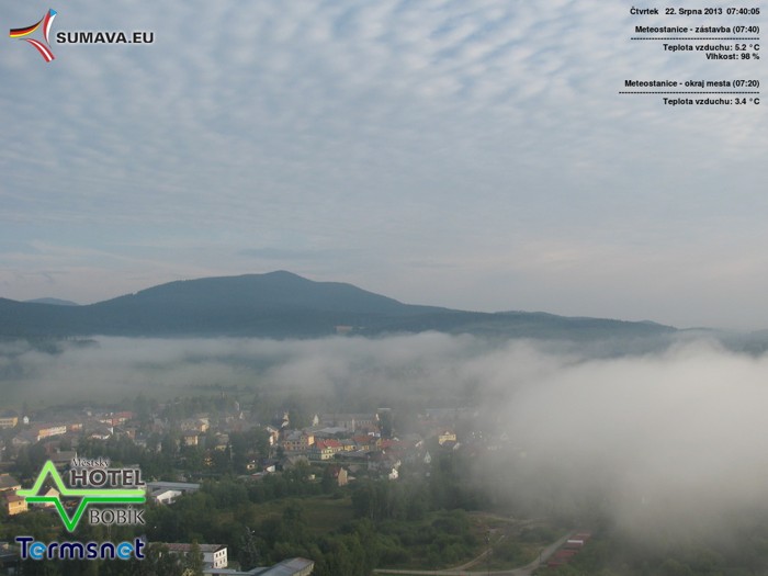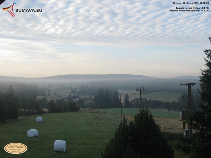 Počasí minulých dní přineslo jak slunečné dny, tak i přechodně trvalejší déšť. Víkend byl nakonec slunečný, ikdyž předpověď slibovala na sobotu ojedinělé bouřky. První srážky zasáhly Šumavu z neděle na pondělí, během pondělního dne přišlo od západu pásmo trvalejšího deště, skončilo tak dlouho trvající sucho. Za vlnící se studenou frontou, přišlo na Šumavu v úterý výraznější ochlazení, teploty byly ve středních polohách pod 15°C, v horských polohách jen kolem 10°C. Středa byla většinou polojasná a beze srážek. Díky chladnějšímu proudění a zmenšené oblačnosti klesaly v mrazových kotlinách teploty opět pod nulu, na Perle za poslední týden mrzlo ze 7 dní celých 5.
