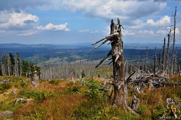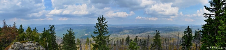 Pohled z vrcholu Grosser Rachel na okolí Poledníku a Modravských slatí