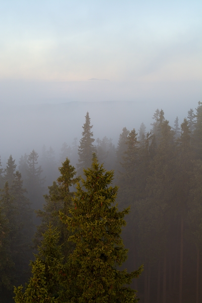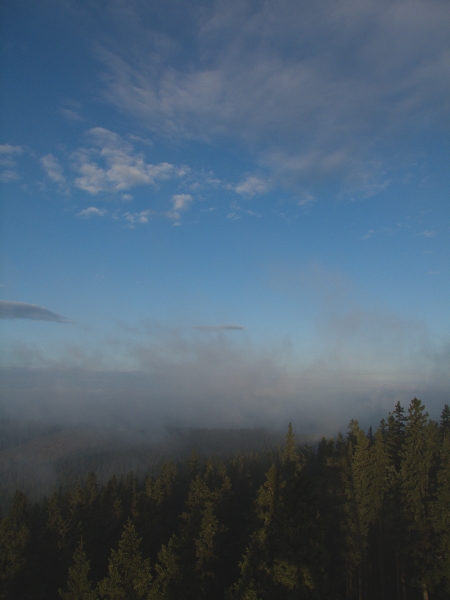 Od jihozápadu bohatě přisouvaná mlha se tentokrát nejen ani na okamžik neroztrhla, ale ke všemu proměnila svou vlezlou vlhkostí boubínskou rozhlednu bezmála v kluziště.