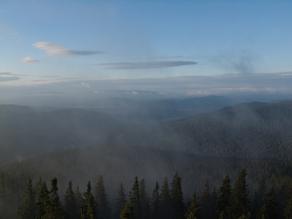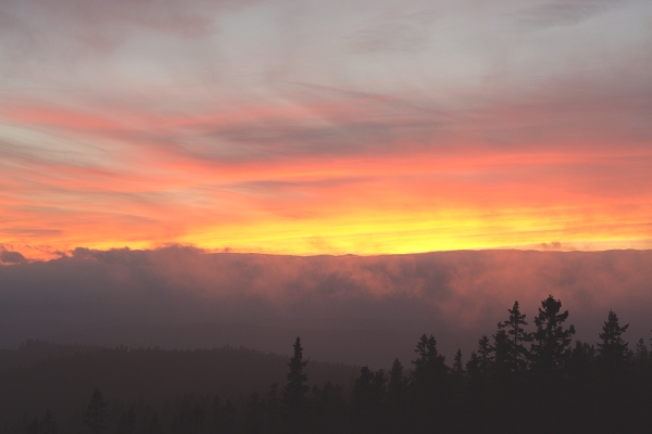 Slunce o sobě dávalo zpoza obzoru stále více vědět i v oblacích nad Trojmezenskou hornatinou a současně bylo zřejmé, že včerejší alpská podívaná se dnešního rána nezopakuje.