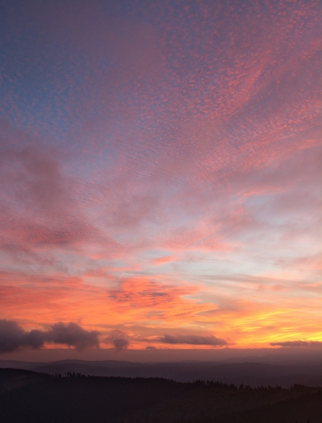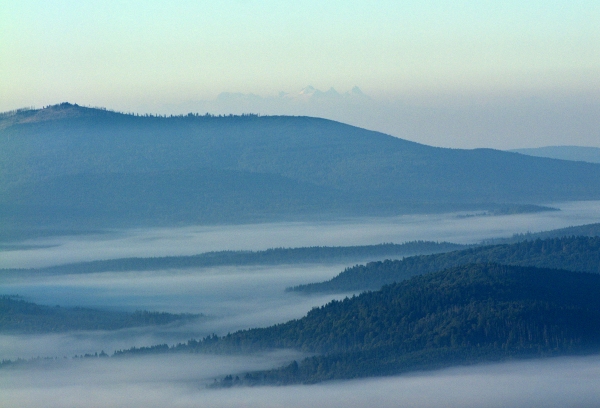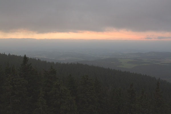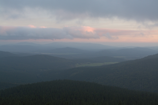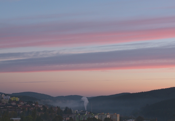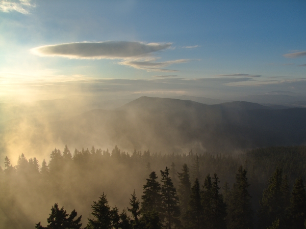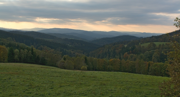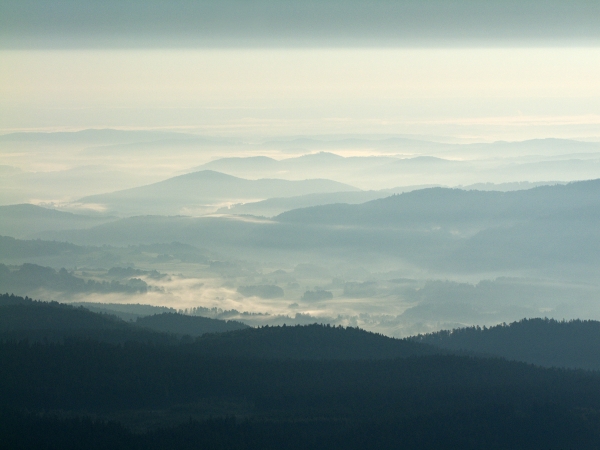 Obarvilo nízkou oblačnost nad Trojmezenskou hornatinou …