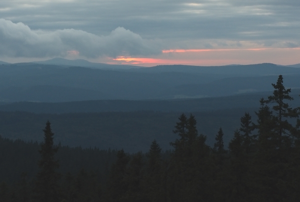 Oblačnost ovšem stále pracovala, přesouvala se a temněla, takže brzy definitivně ukryla dosud nezapadlé Slunce a dodala celé krajině lehce dramatický ráz.