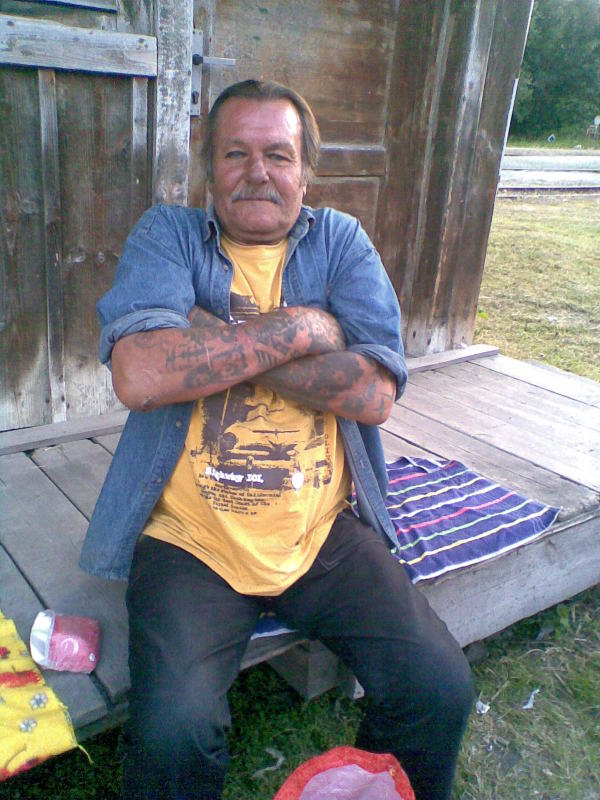 Jóóó, Helena……..To je moje životní láska. Teď je jí 51 let, to bych ale asi říkat neměl, co? Teď bydlí v Cehnicích u Strakonic, občas za ní jezdím a pomáhám tam na baráku makat.. Bydlí tam u jednoho chlapa a já se trápím, co s ní bude, až ten chlap umře. Já bydlím přes dvacet let venku. Teď jsem dole v kasárnách, je to jenom taková obyčejná místnost, nejsou tam kamna, mám tam jenom matrace. Je to prasečák, potřeboval bych byt. S Helenou jsme často spolu a nedám na ní dopustit.