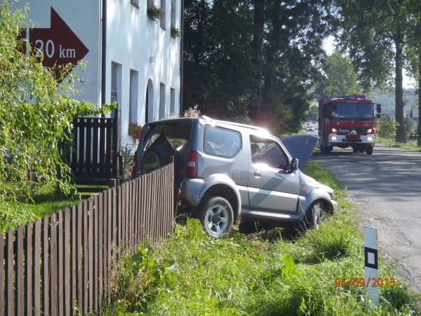 K dopravní nehodě dvou osobních vozů došlo včera v odpoledních hodinách u Dlouhé Vsi. Naštěstí ke zranění osob nedošlo, kromě vozidel byl poškozen plot rodinnného domu stojícího v místě nehody.