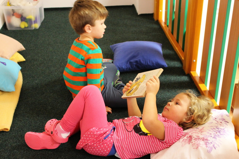 Skoro se zdá, jako by „Smetanka“ byla nafukovací, ale není. „Zelená“ třída je zřejmě posledním stávajícím prostorem, který bylo možné zaplnit dětmi. Už takhle jich má školka úctyhodný počet a všechny potřebují dostatek místa. Tuhle novou třídu si paní učitelky moc pochvalují, také proto, že s firmami, které ji připravovaly a vybavily, byla výborná spolupráce a všechno je vyřešeno velmi prakticky a po konzultacích s učitelkami. Zajímavě řešené je například uložení lehátek (na foto). Nad nimi vznikl další hrací prostor, kde si děti rády čtou, zpívají, nebo jen tak odpočívají.