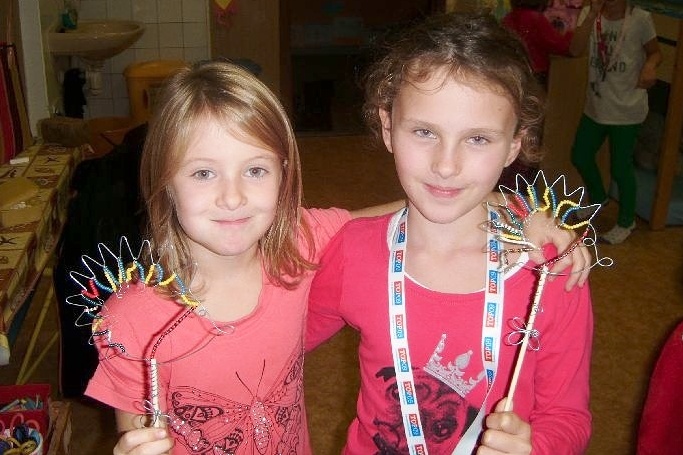 „Sychravé a deštivé počasí nijak nevadilo dětem a rodičům z II. oddělení ŠD Pampeliška, kteří přijali mé pozvání do „modré“ školy na tvořivé odpoledne a přišli včera odpoledne, i se svými sourozenci nebo kamarády, vyrábět podzimní výzdobu. Zápichy v podobě houbiček a ježečků jen hýřily barvami, když je děti s pomocí maminek či babiček zdobily. Během práce si děti odběhly zobnout sušenek, napít se limonády, rodiče měli možnost posedět nad kávou a čajem. Třicet párů šikovných rukou si hravě poradilo s drátky i mrňavými korálky, takže kolem 18. hodiny, kdy už měli všichni hotovo, to byla opravdu „duhová podívaná“. Děkuji všem za příjemně strávené odpoledne a těším se na příště!“