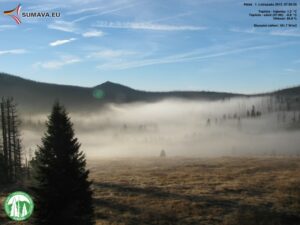 Přelom října a listopadu byl bohatý na zajímavé záběry z našich webkamer. Ve sváteční odpoledne 28. října byly po západu slunce vidět velmi pěkně alpské