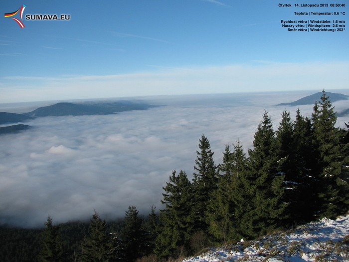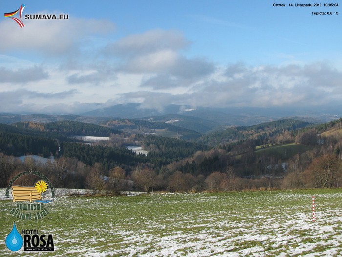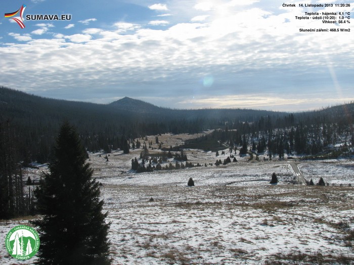 Šumava pohledem našich webkamer 14. listopadu dopoledne: