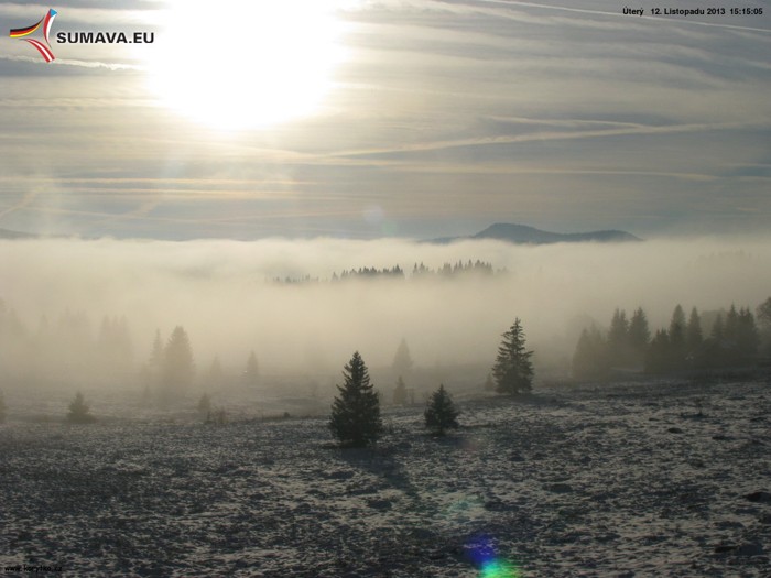 Výběr snímků z našich webkamer obsahuje opět lahůdkové záběry. První tři záběry dokládají, že Svatý Martin přijel na Šumavu, i když jen do horských poloh. Nejvíce záběrů je z úterý 12. listopadu. Svítání na Svatoboru, ranní námraza na Poledníku nebo nízká oblačnost z Poledníku a Filipovy Hutě. Ve stejný večer byl opět nádherný záběr z Filipovy Hutě a také z nové webkamery nad Frymburkem u Lipenské přehrady. 14. listopad a opět webkamera Filipova Huť, která zachytila nízkou mlhu. V neděli 17. listopadu vykukoval z nízké oblačnosti jen vrchol Poledníku, v podvečer zachytila webkamera z Malého Ostrého západ slunce, který pěkně obarvil nízkou oblačnost.