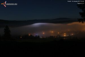 Záběrům z našich webových kamer vévodí snímky zachycující nízkou oblačnost. Hned první záběr je toho důkazem. Z Libína byla vidět v pondělí 18. listopadu rozpouštějící