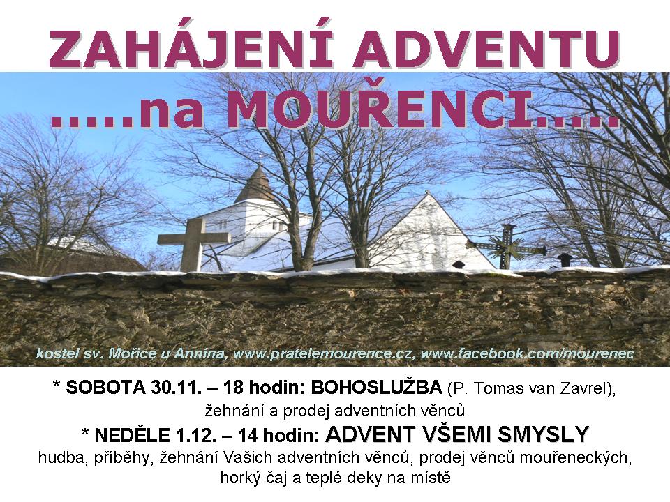 Ani Mouřenecký kostelík nemůže pochopitelně zůstat stranou adventu. Cel tým organizátorů, který pro návštěvníky připravuje bohatý program „oživeného Mouřence“, vás zve nejen na zahájení adventu již tuto sobotu, ale i na další zimní akce: